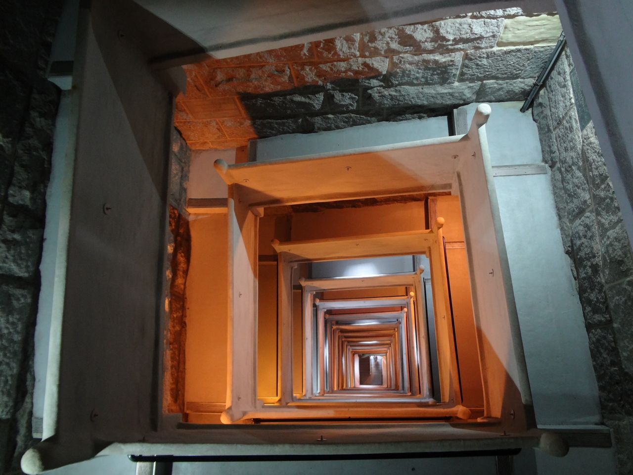 「アメリカの職人文化って、なんか思いつくかなー?」と一生懸命考えていて、これを思いついた。石を積み 上げられて作った塔の中にはらせん状の階段が築かれており、上から見下すと幾何学的な構造は、なかなか美しい。これは、もしかしたら、アメリカの匠の技と いえるのかもしれない。